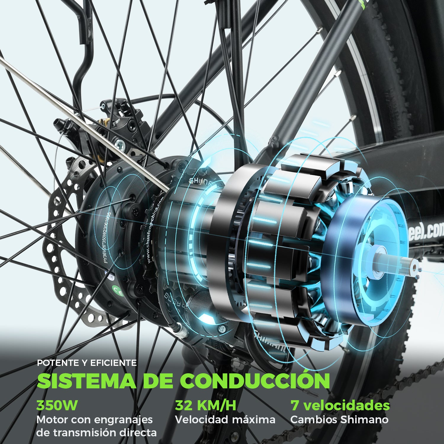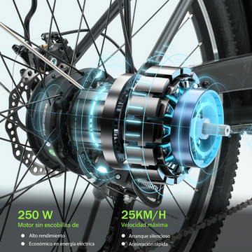 El motor de cubo engranado proporciona más par desde el reposo y para subir pendientes con una aceleración suave y menos ruido
